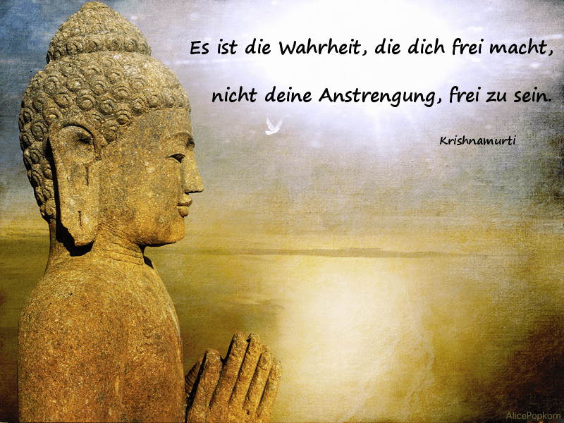 Den Wert des Übens und der sanften Disziplin sehe ich sehr deutlich. Und doch spüre ich, dass diese Disziplin auch ein Hindernis sein kann: eine Vorstellung, der ich nachjage und dabei das JETZT übersehe. Auch wenn meine Vorstellung dann eine spirituelle ist – sie ist eine Vorstellung, steht vor mir und damit versperrt sie mir die Sicht auf die Realität.